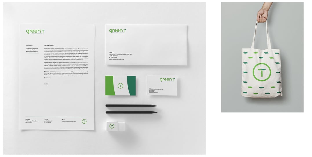 Il simbolo nasce dall’unione del cerchio (armonia e rigenerazione) più la lettera T (Green T) e dal simbolo finale (green).
