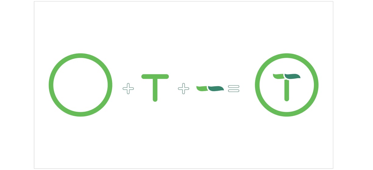 Per questi motivi la costruzione è basata sul cerchio. Le foglie sono gli organi indispensabili per la pianta perchè forniscono la fotosintesi, la respirazione, la traspirazione e in rappresentanza dell’anima green vanno a comporre la lettera T all’interno del logotipo.