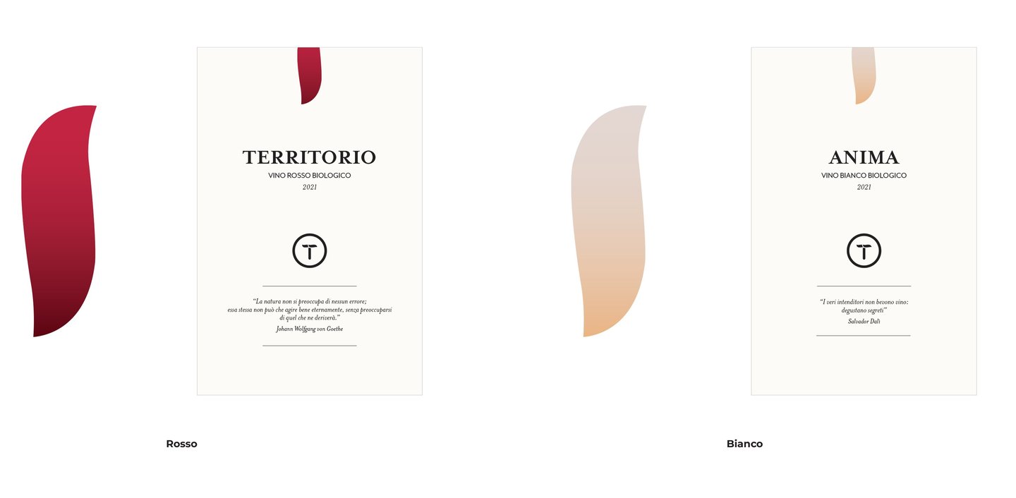 Simbolo distintivo per identificare con semplicità le tipologie di vino,sull’etichetta verrà utilizzato in parte il simbolo che compone la T del logo. Esso avrà sfumature differenti in base alla tipologia.