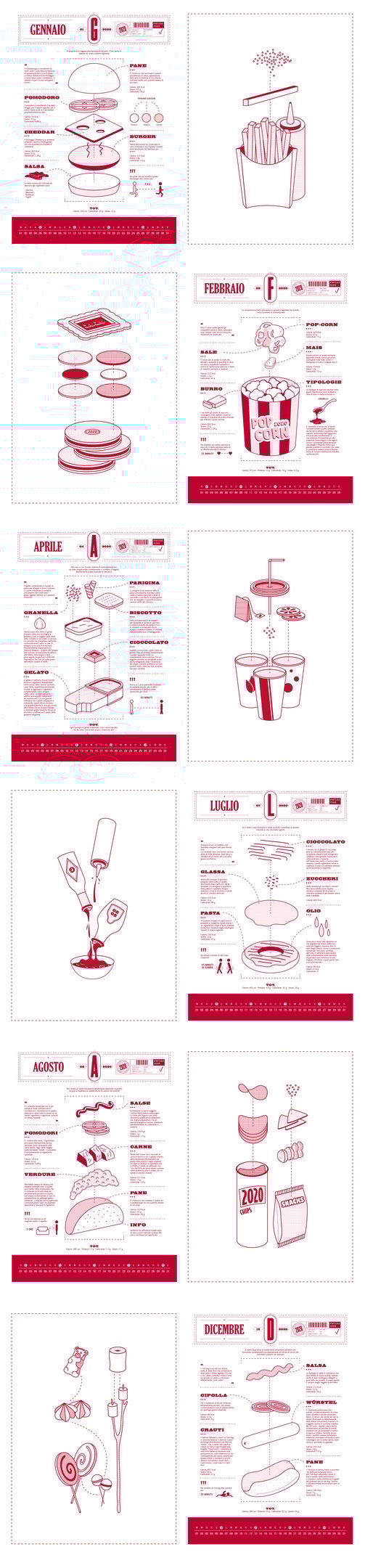 Calendario che rappresentare i cibi più famosi e la loro composizione spiegando in modo "amichevole" ciò che mangiamo ogni giorno.